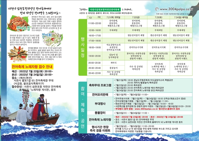 재19회 사천시 삼천포항 자연산 전어축제 행사안내 리플릿 페이지 정보 작성자 관… 댓글 0건 조회 3,407회 작성일 22-06-24 16:59 본문 재19회 사천시 삼천포항 자연산 전어축제 행사안내 리플릿 목록 이전글제21회 사천시 삼천포항 자연산 전어축제 일정 24.07.08 다음글제19회 사천시 삼천포항 자연산 전어축제 행사 포스터 22.06.24 댓글목록 댓글목록 등록된 댓글이 없습니다.